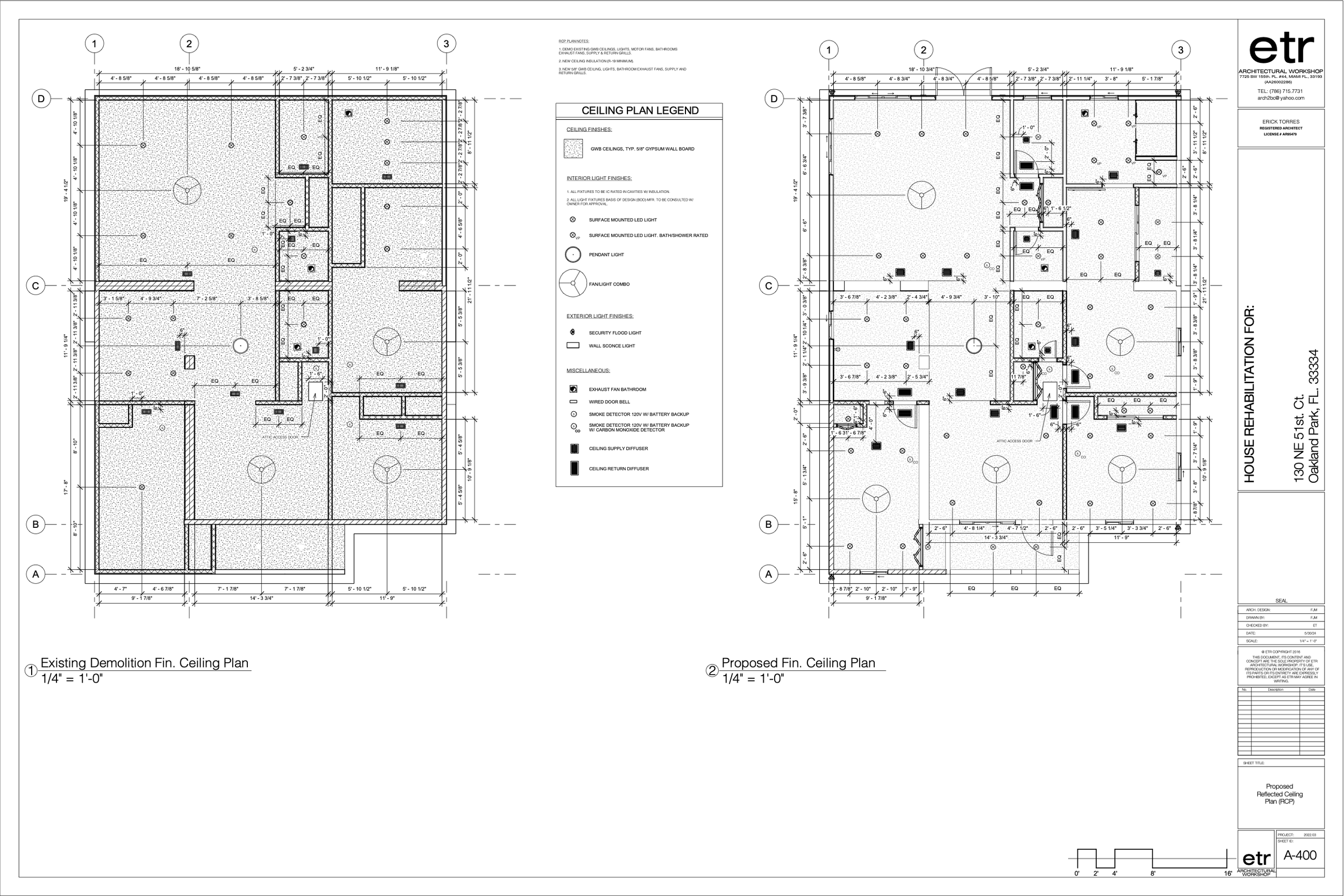 Space planning and design by analyzing existing footprint to optimize kitchen, primary suite, and living area adjacencies. Develop architectural blueprints, including floor plans, reflected ceiling plans, and elevations. Select all interior finishes, cabinetry, lighting fixtures, and hardware.