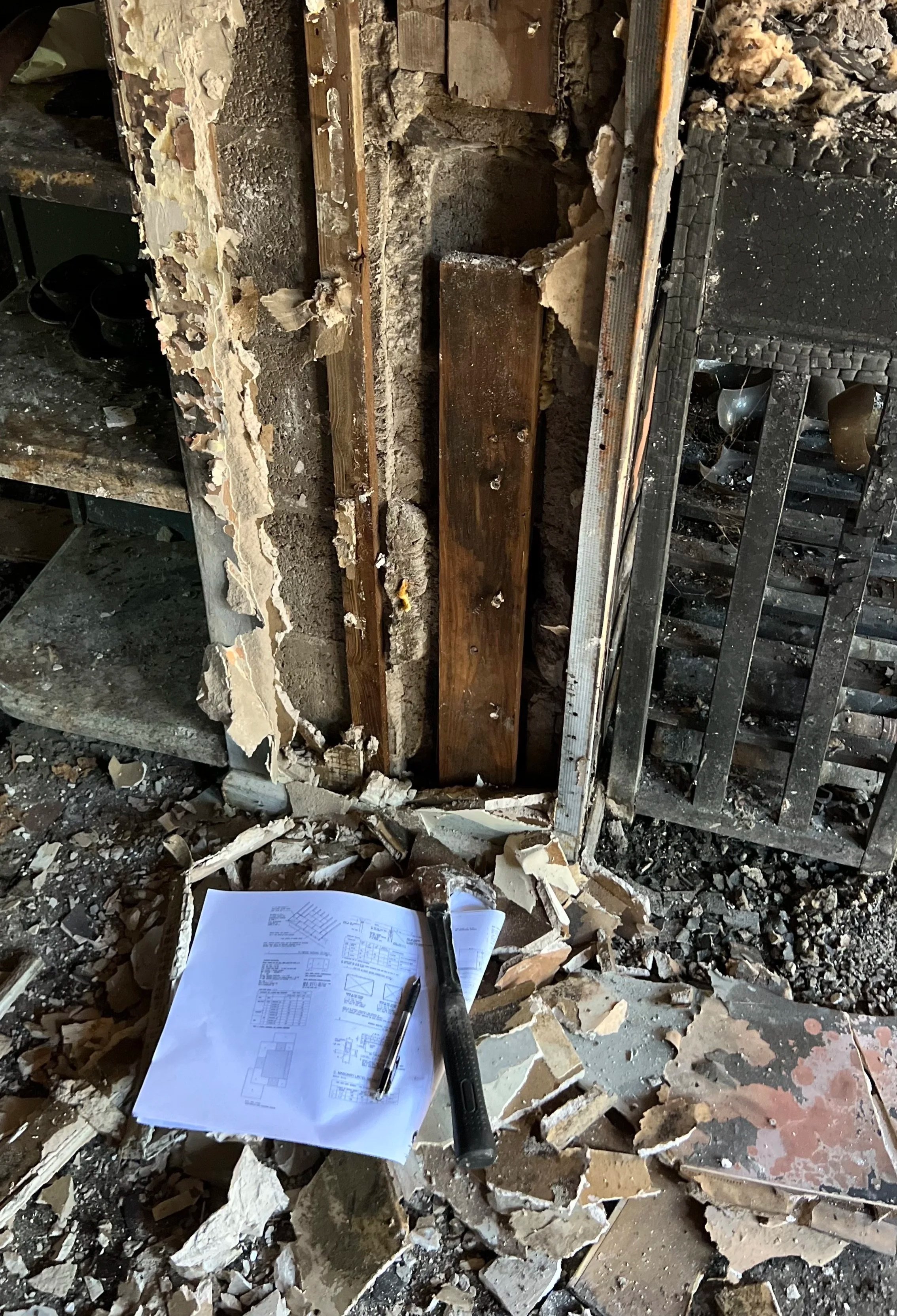 Existing conditions survey, damage assessment coordination, and preliminary code/life-safety review.