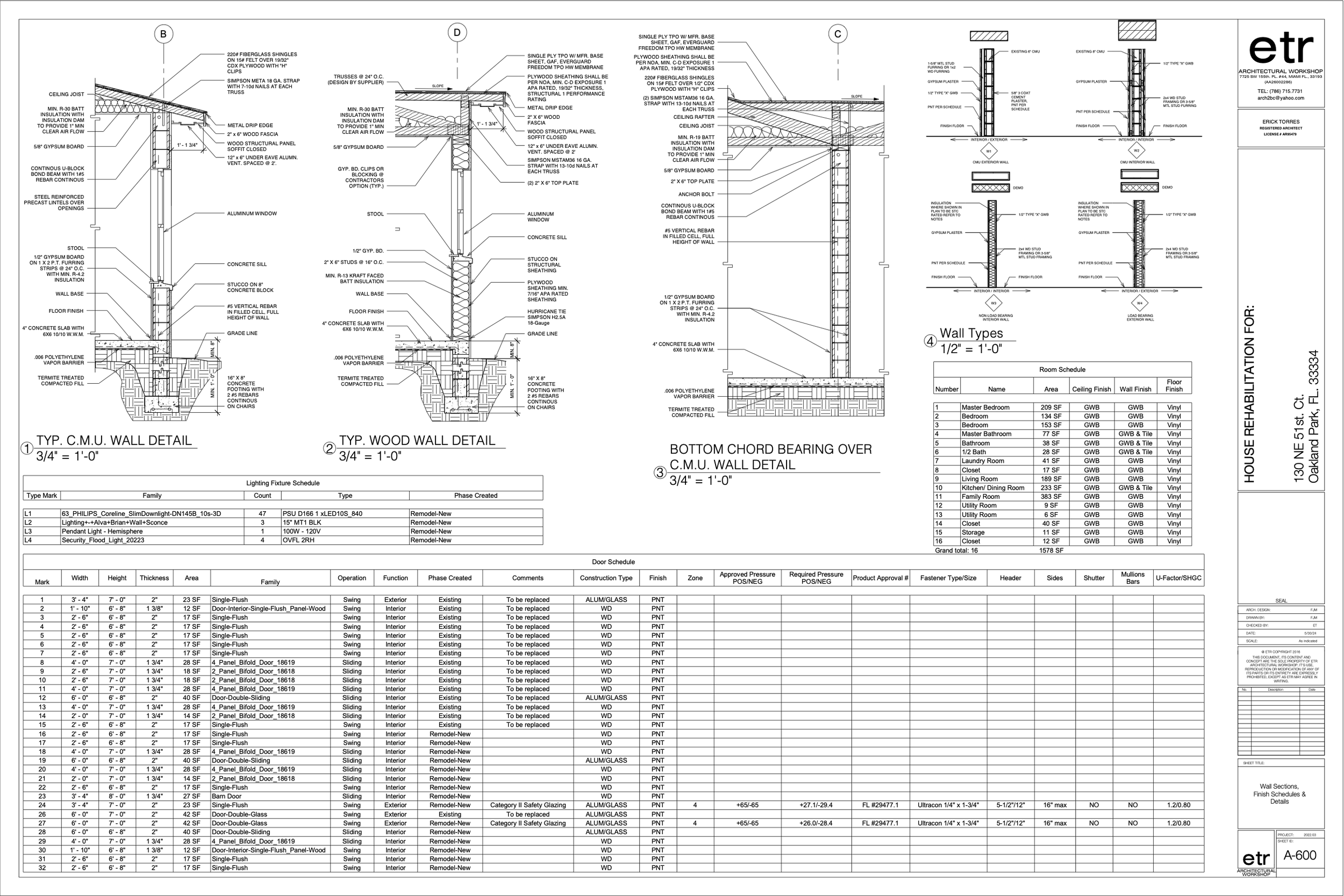Wall sections details and schedules