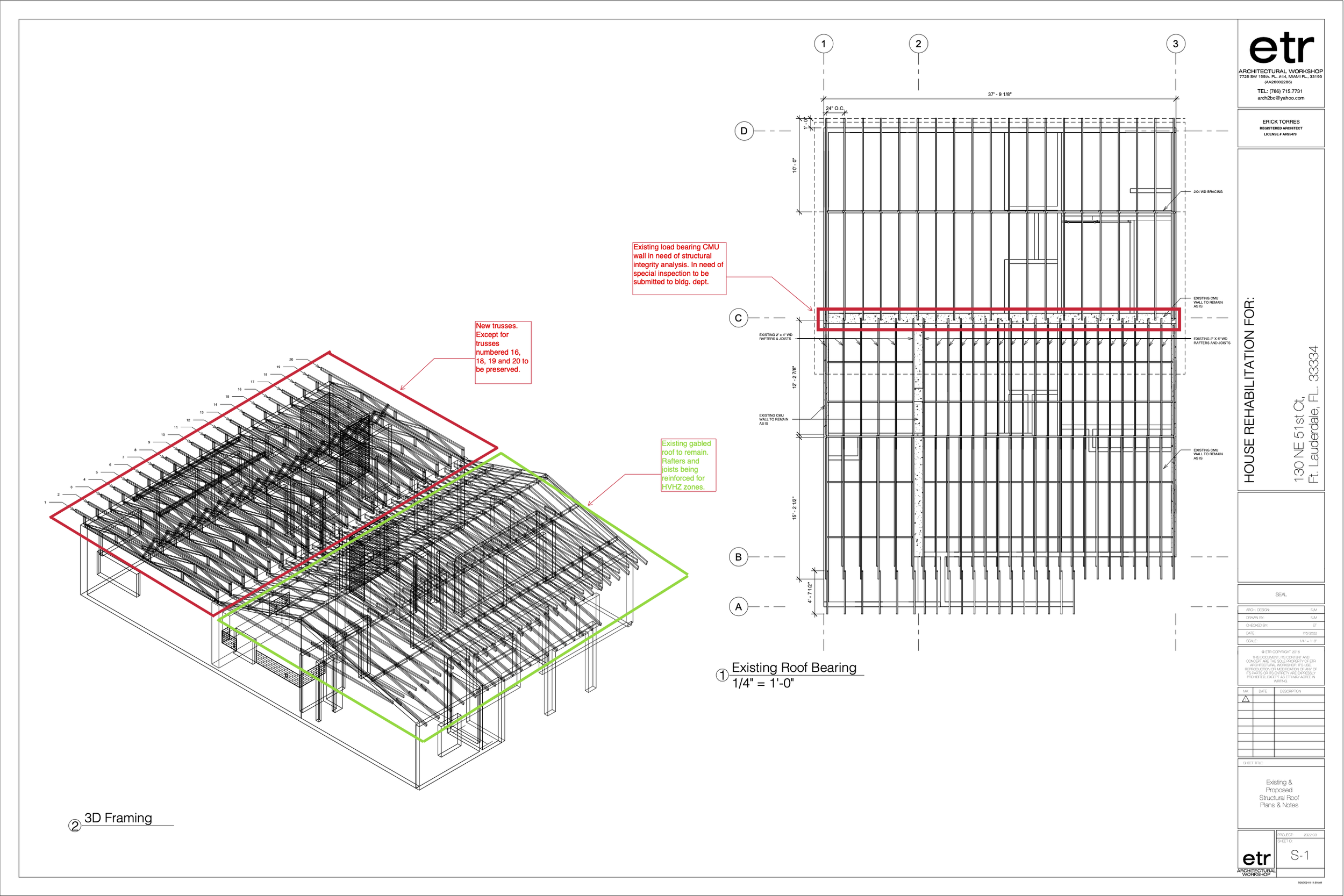Integrating the existing framing to the new proposed one. Reinforcing the gabled section with hurricane straps and anchoring.