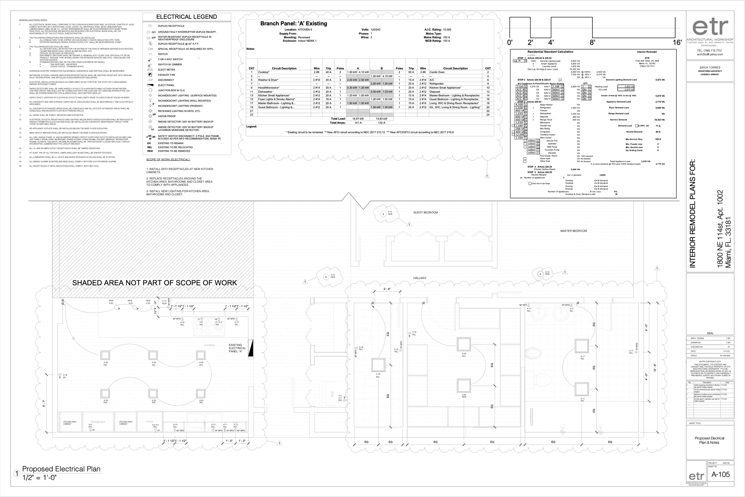 01 Electrical plan that incorporates the new lighting, outlets upgrades and new equipment electrical requirements.